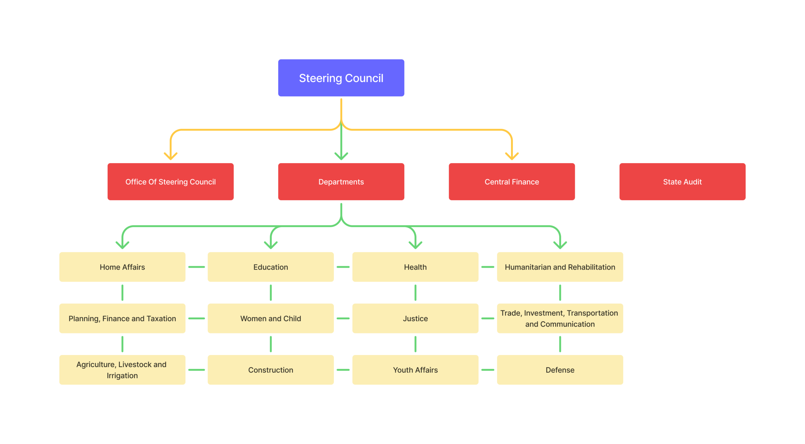 The IEC consists of 6 Steering Council members and expects that at least 12 state affairs departments will be established. Currently, the IEC structure consists of the following eleven departments to effectively deliver services to the people of Karenni State.