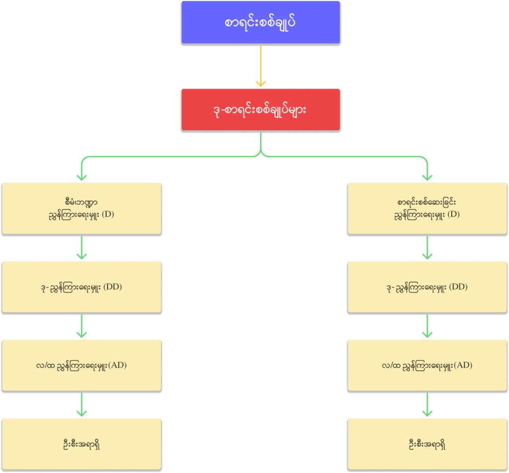 - (၆) ဘဏ္ဍာငွေ လေလွင့်ဆုံးရှုံးမှု့မရှိစေရန် ၊ ပွင့်လင်းမြင်သာမှု့ရှိစေရန်၊ တာဝန်ယူ တာဝန်ခံမူများကို ထိ ရောက်စွာ ဆောင်ရွက်နိုင်ရန်။