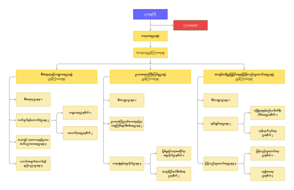 တရားရေးဌာန၌ ဖွင့်လှစ်ထားသည့်ရုံး/ဌာနခွဲများဖွဲ့စည်းပုံ